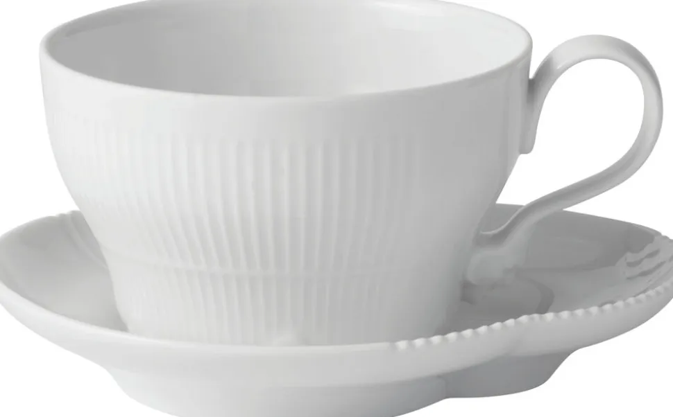 I en leg med Royal Copenhagens designarv præsenterer designer Louise Campbellet uforstyrret udtryk af form med Hvid Elements. På alt fra klassiske tallerkenertil skyformede fade er Hvid Elements en krystalhvid, legende komposition af de velkendterifler fra Musselmalet Riflet, den delikate kant fra Halvblonde mønstreneog den takkede kant fra Flora Danica.