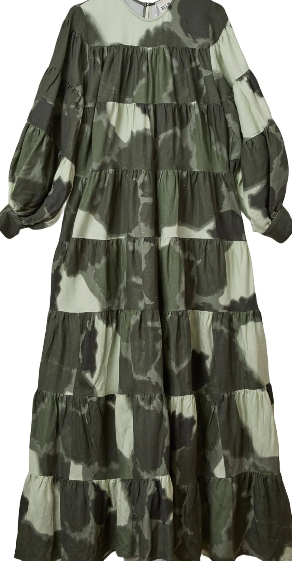 Ibi-kjolen har et legende gennemgående slipsfarvetryk i en smuk mørkegrøn palet. Den er designet med en lagdelt silhuet og pufærmer og har knaplukninger bagpå og på armhullerne. Stoffet er fremstillet af en hør- og viskoseblanding og rammer den perfekte balance mellem komfort og åndbarhed