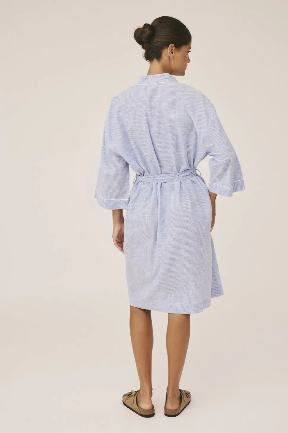 Kimono fra Magasin du Nord Collection i den blødeste kvalitet af 100% økologisk, GOTS-certificeret bomuld. Kimonoen er enkel i modellen med vide ærmer, bindebånd i taljen, sidelommer samt fine piping-detaljer, der giver en rigtig flot effekt. Se også de andre smukke styles i samme serie. Økologisk bomuld kommer fra landbrug, hvor man arbejder med naturen på en måde så både økosystemer og biodiversitet opretholdes. Det betyder, at der ikke benyttes giftige kemikalier, at vandforbruget begrænses og at der i højere grad anvendes regnvand i produktionen. Når du vælger økologisk bomuld, er du derfor med til at værne om jordens ve og vel.
