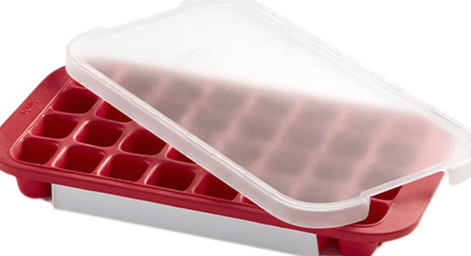 32-kubet isterningebakke lavet af fleksibel gummi med låg. Ingen lugte takket være låget. Nemt at få ud.