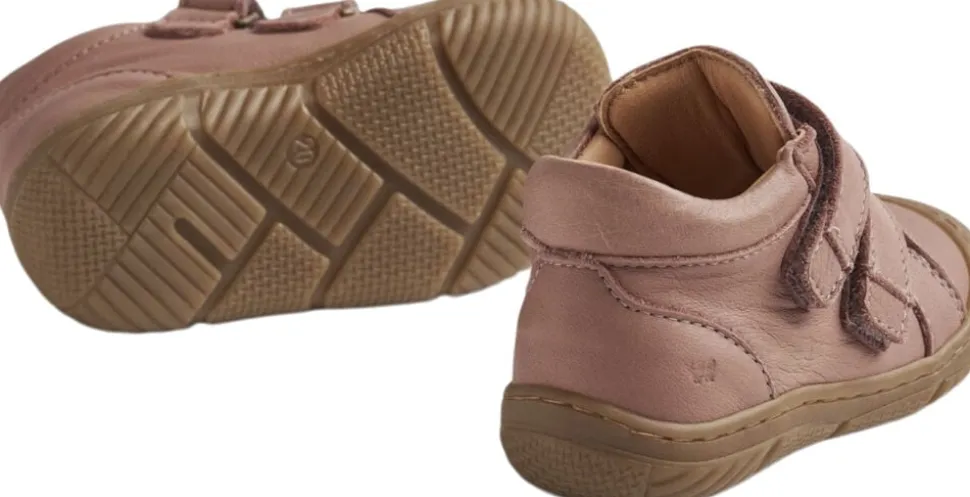 Behagelige pre-walkers med dobbelt velcrolukning til det mindste barn. – Velcrolukning med to stropper Wheats pre-walkers er lette, fleksible og behagelige for dit barn at bevæge sig rundt i. De er designet til at beskytte de små fødder, der skal bevæge sig ud på eventyr for første gang. Denne sko har dobbelt velcrolukning, der sørger for at holde tæt om foden. Samtidigt gør velcrolukningen det nemmere for dig/barnet at få skoen på. Pre-walkeren er lavet i krom- og metalfrit garvet læder samt ruskind. Læder, der er garvet uden krom og metal kan få en skøn patina over tid. Desuden har skoen en blød latex indlægssål beklædt med krom- og metalfrit garvet læder. Latex er et naturprodukt, der er åndbart og fleksibelt med en trampolineffekt for behagelige skridt. Ydersålen er lavet af TR gummi, som er et meget holdbart og skridsikkert materiale. Skoens sål er designet til at dække tæerne omkring snuden for at give den mest optimale beskyttelse. De er normale i størrelsen og har et fast greb om dit barns fødder. Anbefalet voksetillæg: 10-15 mm Vejl. indvendige mål: Str. 19 = 12,3 cm Str. 20 = 13,0 cm Str. 21 = 13,7 cm Str. 22 = 14,2 cm Str. 23 = 14,9 cm Str. 24 = 15,8 cm Str. 25 = 16,4 cm Str. 26 = 17,0 cm — Yder materiale: LWG certificeret ruskind og læder Foer: Krom- og metalfrit garvet læder Indlægssål: Blød latex indlægssål belagt med krom- og metalfrit garvet læder Yder sål: Genanvendt TR gummi