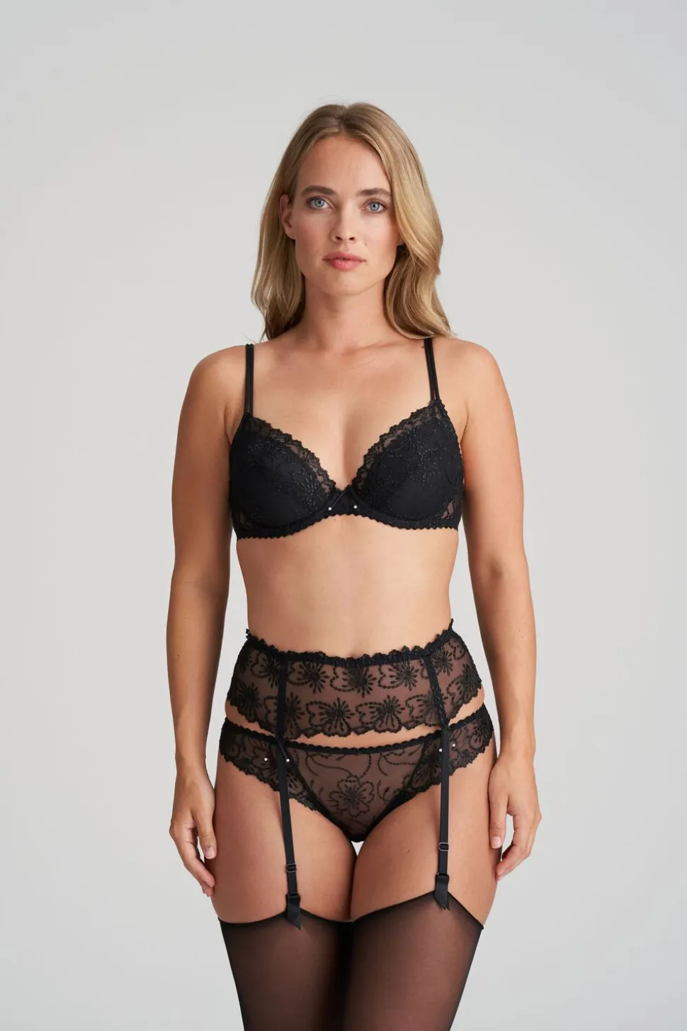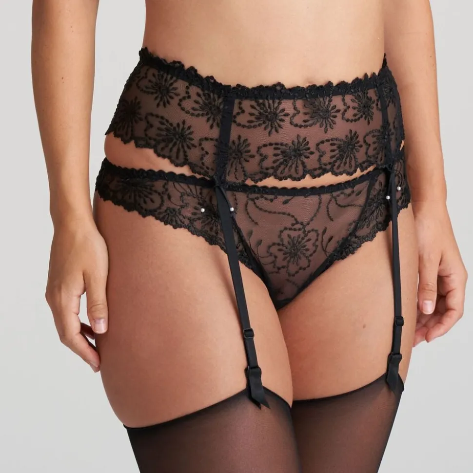 Oh la la .. En sort elegant hofteholder i det smukkeste broderi. Denne hofteholder hører til Marie Jo serien Jane – men kan jo bruges til andres serier også. Jane er kendetegnende for luksus og elegance – hvilket denne hofteholder også udstråler. Findes i sort og i natur