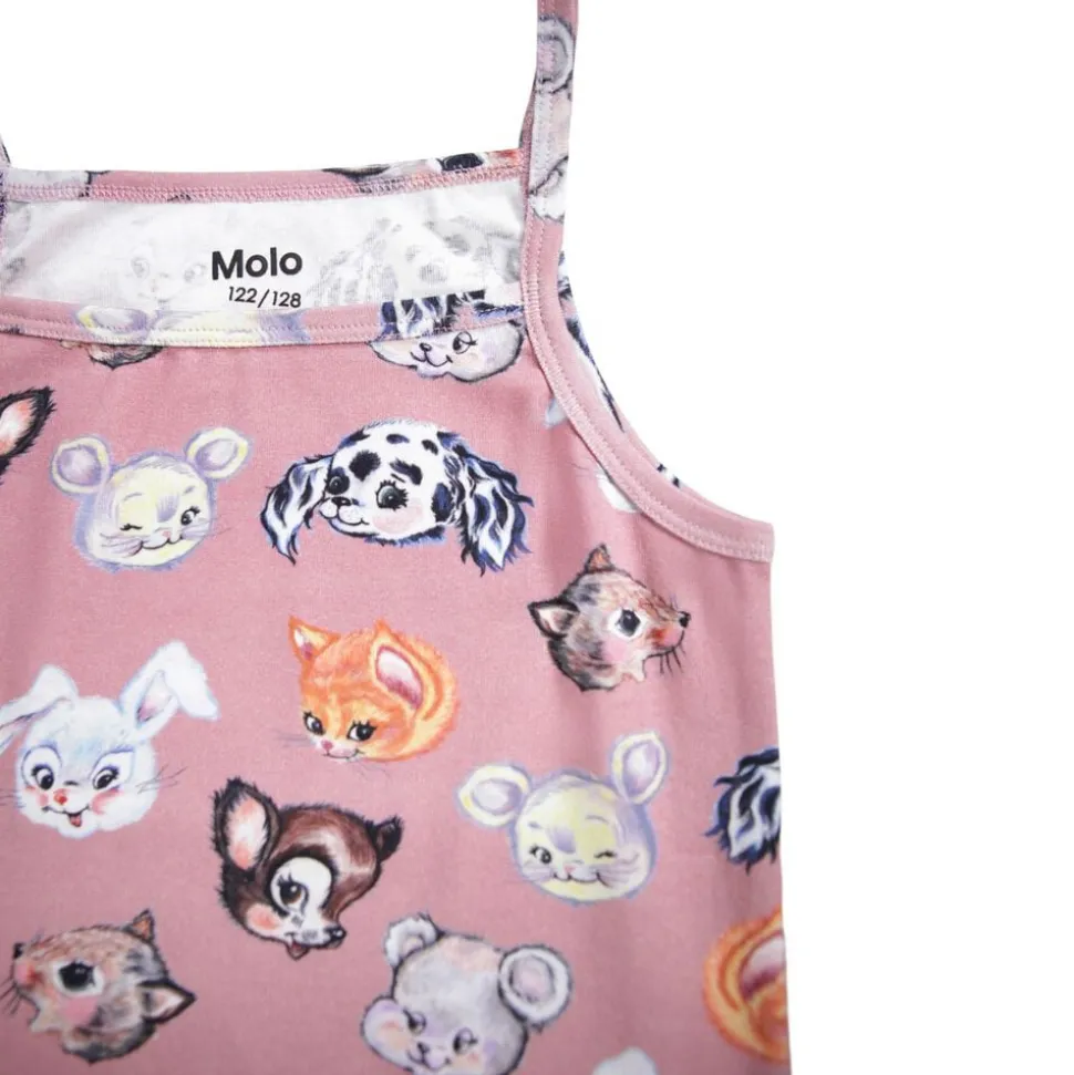 Dette undertøjssæt fra Molo er lavet af blødt og strækbar viskose. Toppen har tynde elastiske stropper og en rynket søm foran, der giver et flot snit. Både overdel og underdel har en bred elastikkant, der sikrer en god pasform og behagelig komfort.