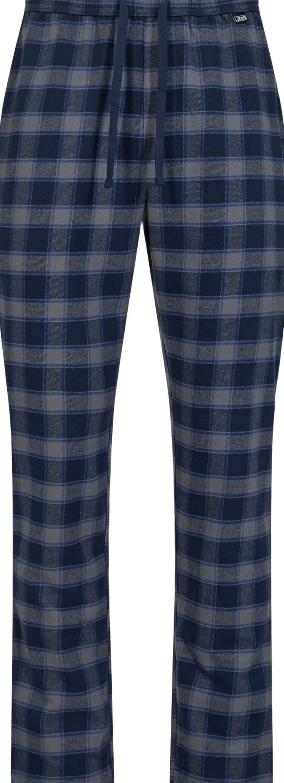 Disse pyjamasbukser fra JBS er lavet i blød flannel af 100% bomuld. Bukserne har et klassisk blåternet mønster og en dyb navy farve. Materialet føles behageligt mod huden og egner sig godt til afslapning derhjemme. Den løse pasform giver god bevægelsesfrihed natten igennem. Elastik i taljen sikrer en komfortabel og fleksibel pasform. Egnet til voksne mænd, der sætter pris på komfort og kvalitet i nattøj.