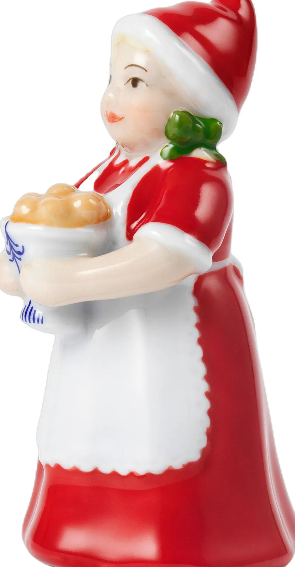 Julemandens kone er en sød ledsager til den årlige julemandsfigur. I år bærer hun i sine arme et stort Royal Copenhagen fad med æbleskiver, der er en klassiker i den søde juletid – bedst serveret sammen med en kop kaffe fra Årets Julemand figurens kaffekande.