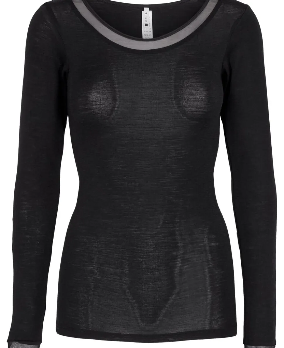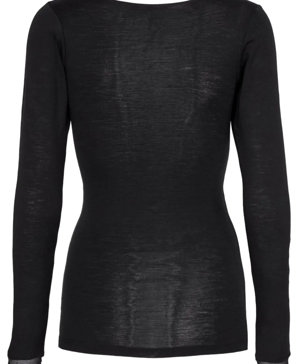 T-shirt med lange ærmer og meshkant. Kan bruges under tøjet eller som en del af outfittet.