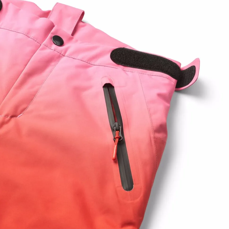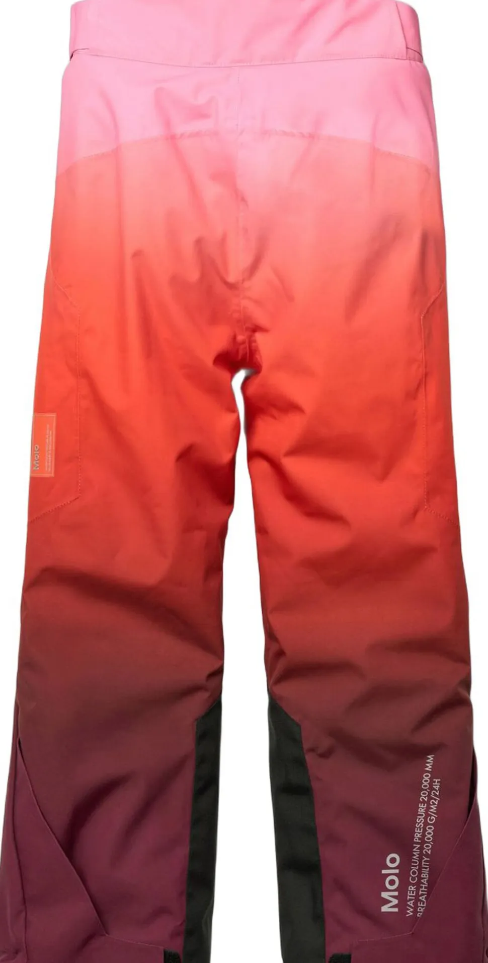 Disse røde overtræksbukser fra Molo er lavet i genanvendt polyester. Bukserne har trykknap- og lynlåslukning, udvendige, justerbare velcro-stropper, bælte stropper til Molos seler (ekstra tilbehør), justerbar benåbning med snefang og ekstra forstærkning mellem benene. Der er vandtætte lommer, refleks bagpå, fleece foret udsatte steder og vatteret med 3M Thinsulate.