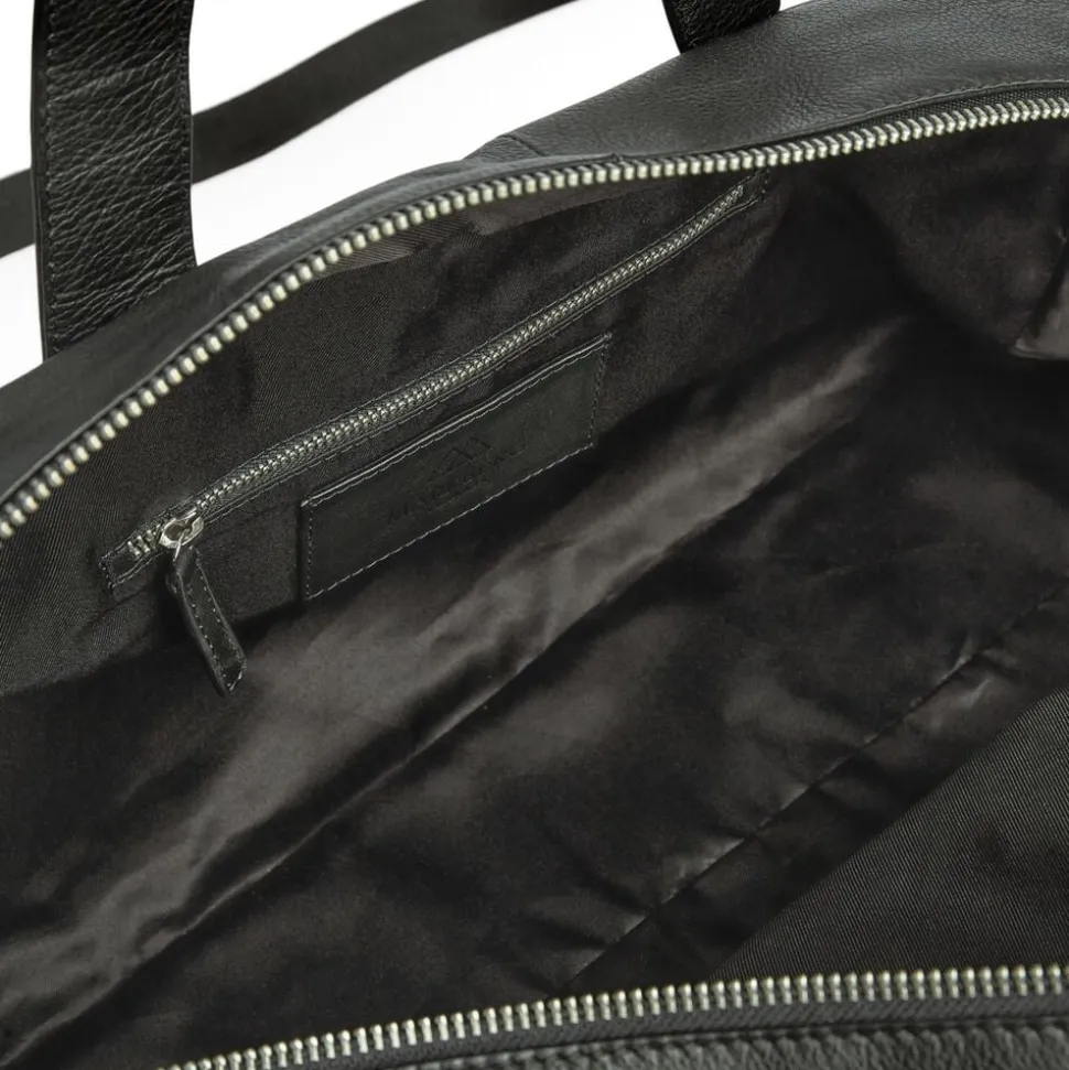 Keaton Weekend Bag, 30L fra Markberg Man er en elegant og rummelig Weekendtaske i 100% blødt kalveskind. Et tidløst design, der kombinerer eksklusivt håndværk og funktionalitet perfekt til både rejser og hverdagsbrug. Kvaliteten er LWG-certificeret og er en del af vores Zero Waste, hvor intet skind går til spilde i produktionen. Læderets struktur og nuance kan variere naturligt og giver tasken et unikt udtryk. På fronten har rejsetasken en stor synlig lynlåslomme, med plads til mindre ejendele. Det store hoved rum med lynlås, der kan rumme 30 liter, er der god plads til de ting du har med på rejsen, til træning eller til weekendopholdet. Indvendigt finder du også en lynlåslomme i den ene side. Bagpå tasken er der en lynlåslomme, hvor der er en luggage strap du kan tage frem, men til fastgørelse på din kuffert, når du er ude og rejse. Tasken har en bred justerbar og aftagelig skulderrem. Dertil har tasken to bærehanke, og taskens slidstærke for er i 100% polyester. Taskens hardware er i metal, som er belagt og så er det nikkelfri. Rejsetasken måler 51 cm x 29 cm x 20 cm.