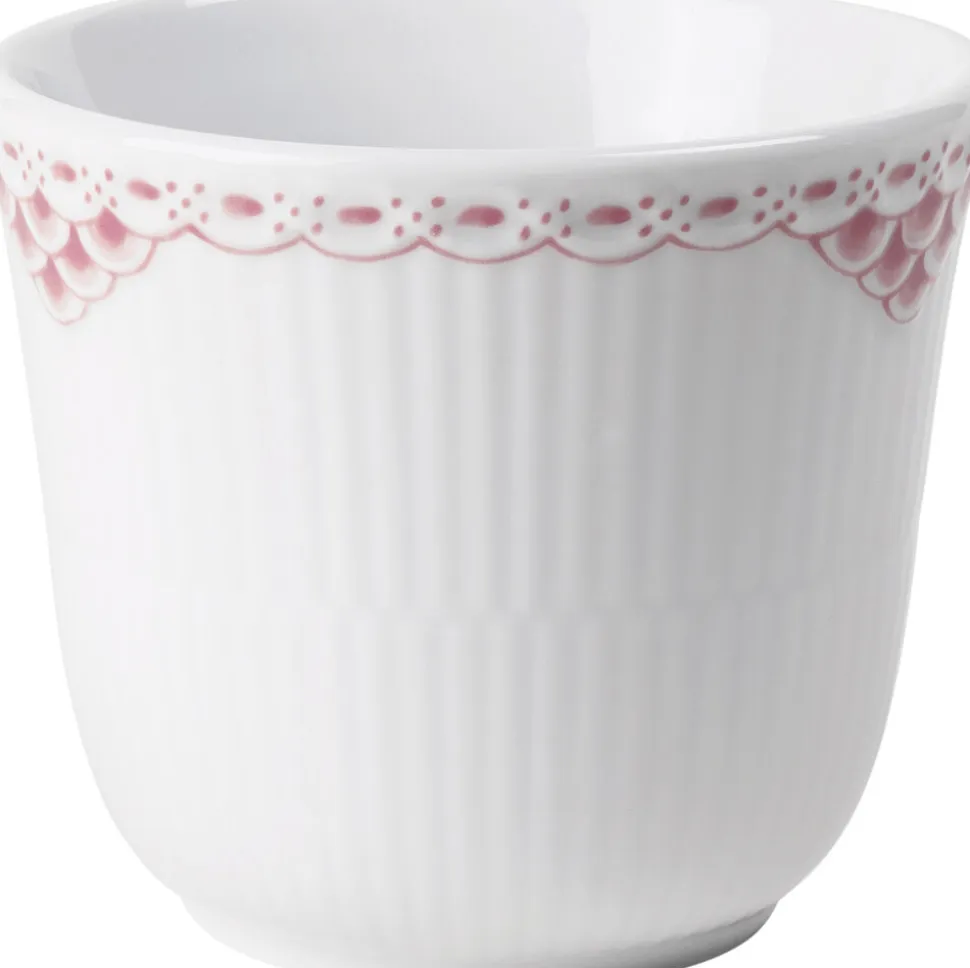 Vikl dine hænder omkring Koral Riflet Blonde Termokop og lad din yndlings varme drik holde dig varm. Royal Copenhagen termokrusene er skabt med et hulrum mellem inder- og ydersiden af porcelænet, som forhindrer, at kruset bliver for varmt til at holde. Den og malede blondekant tilføjer et charmerende touch til dette krus.