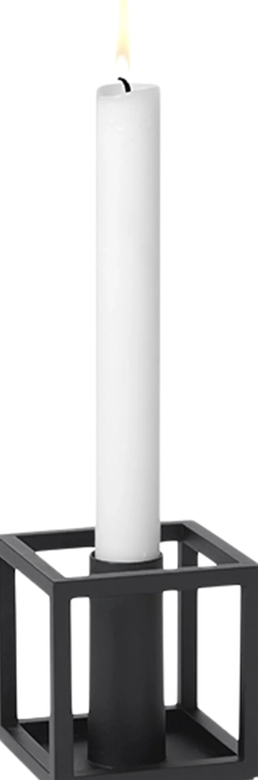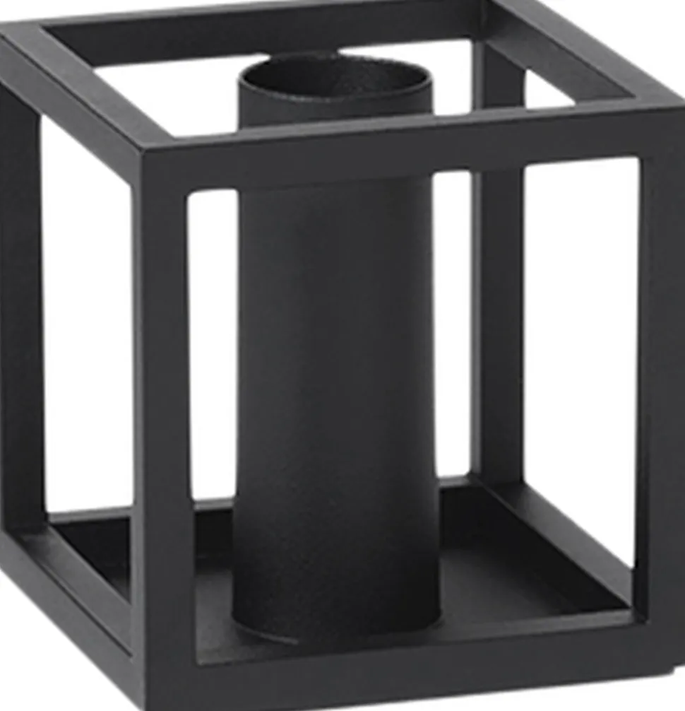 Kubus 1 lysestagen i sort er fremstillet i støbejern og tegnet af Mogens Lassen i 1962. Lysestagen fås i hvid, sort, bruneret kobber, nikkel samt messing. Med skarp fornemmelse for nutidens funkisstil designede Mogens Lassen i 1962 de ikoniske Kubus lysestager, dengang forbeholdt familien og de nærmeste arkitektvenner. Kubus fremstilles fortsat i Danmark, og har blandt arkitekter og designelskere opnået status som et moderne internationalt designikon. Rengøring: Vend stagen med lyseholderne ned ad, og placer den på en bageplade med bagepapir stående på lyseholderne. Sættes i en 75 grader varm ovn i 15-20 minutter. Stagen tørres herefter af med en fugtig klud. NB! Brug aldrig skarpe genstande eller kogende vand til at rengøre lysestagen med. Vi anbefaler, at du ikke lader lysene brænde helt ned i stagen, da dette kan medføre misfarvning eller skader på lakeringen.