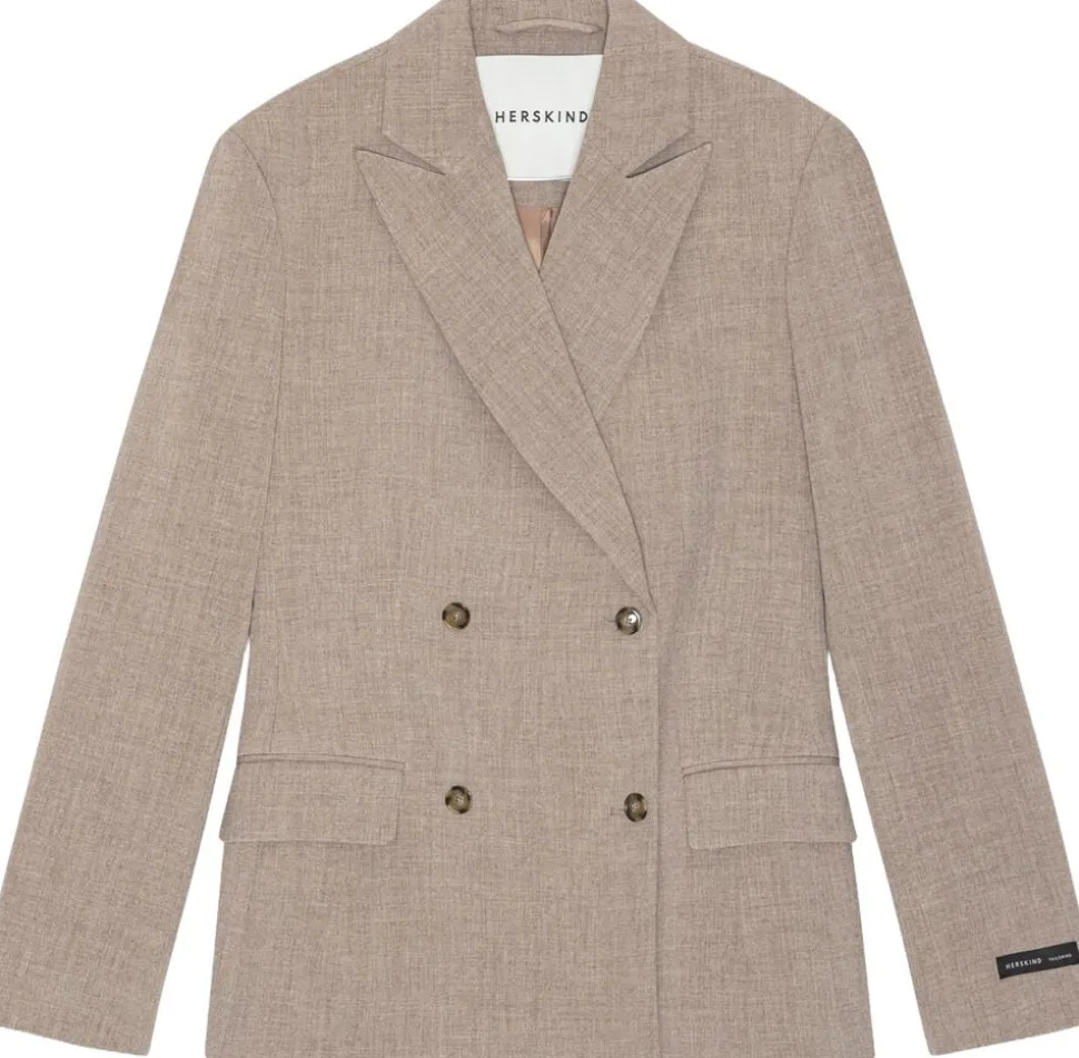 Skræddersyet dobbeltradet blazer.Defineret af en skulpturel silhuet med fitted talje og skarpe skuldre. Designet til et raffineret, feminint udtryk, samtidig med at det bevarer et struktureret look. Skræddersyet, figursyet silhuet sammen med Dita-nederdel eller Kimberly-bukser, der kan bruges til at vende på hovedet