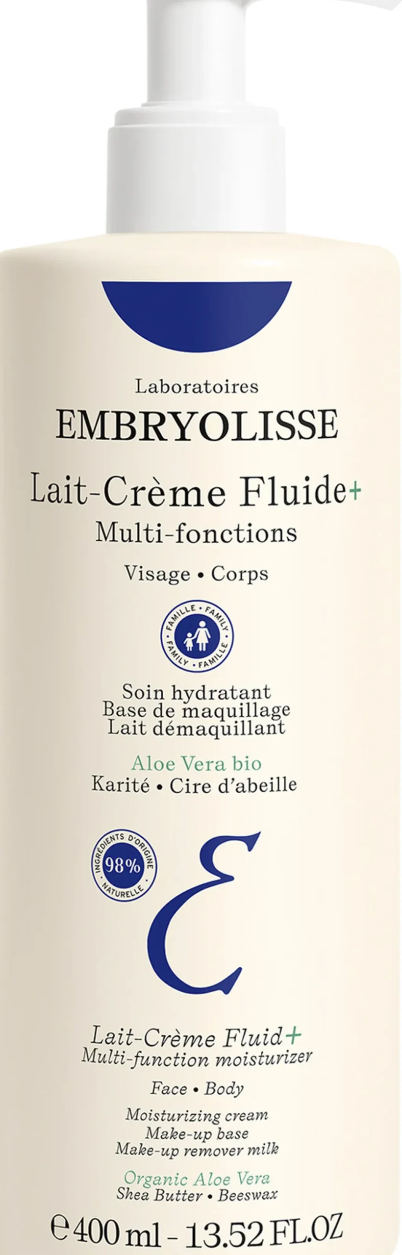 Lait-Crème Fluid+ er en multi-tasking lotion med fugtgivende og nærende egenskaber, som kan bruges af hele familien. Trænger hurtigt ind i huden og efterlader den blød og fugtet hele dagen lang! Indholdet af produktet er formuleret til at reducere allergiske reaktioner og gøre cremen velegnet over for sig selv sart hud. Lait-Crème Fluid+ er ligesom produktet Lait-Crème Concentré et skønt multifunktionelt produkt, der kan bruges som fugtighedscreme til ansigt og krop, makeupbase, rensemælk/makeupfjerner, aftersun og aftershave. Kan bruges morgen og aften over hele kroppen og af alle hudtyper. Den lette tekstur gør Lait-Crème Fluid+ perfekt i varme klimaer.