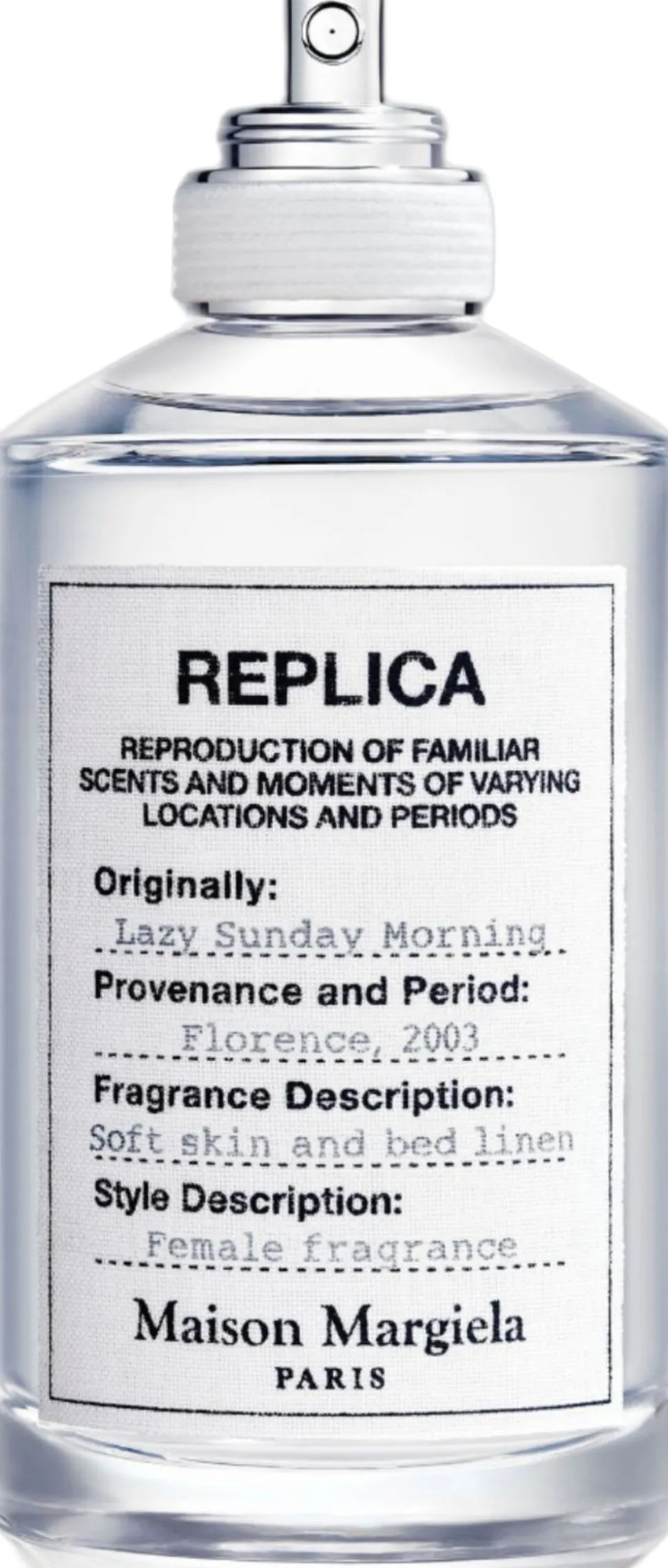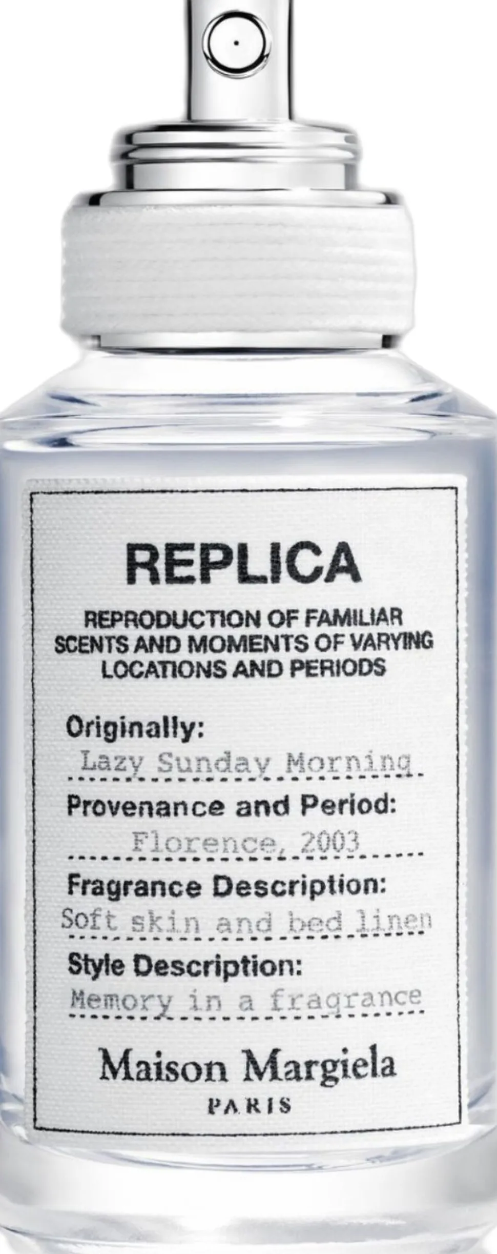 Lazy Sunday Morning er en klassisk blomsterduft, der vækker minder om fløjlsblød hud indhyllet i friskt og behageligt linned med sine noter af frisk pære, iris og sart hvid musk. Den begyndende solopgang og solens milde vækning byder velkommen til en perfekt morgen. En blid sommerbrise fyldt med dæmpede blomsternoter hvirvler den beroligende duft af rent vasketøj op. Din fine og silkebløde hud bliver varm under et svøb af rent sengetøj, så der kun er minderne og sanseindtrykkene tilbage. Lazy Sunday Morning er en uformel og klassisk blomsterduft, der vækker følelsen af komfort, renhed og afslapning. Denne opfriskende og rene eau de toilette er del af REPLICA Memories-kollektionen en kollektion af dufte skabt til at vække personlige minder, som vi alle kan huske. DUFTFAMILIE / DUFTTYPE Blomster / Klassiske blomster NOTER Linjekonval, iris, hvid musk Foreslået brug Duft forstærkes af varmen fra din krop. Påføres der, hvor knæet og albuen bukker, hvis du ønsker en stærkere duft, der holder længere. Undgå at gnide eller duppe på huden efter påføringen. Dette nedbryder duften, så den fortager sig hurtigere. Hvis du foretrækker at påføre duft på dine håndled, så sørg for at påføre på ny efter gentagen håndvask, da det har tendens til at skylle duften af. Udskift duften efter 12 måneder. Parfumer, der er udløbet og mere end ét år gamle, mister den oprindelige dufts helhed. Eau de Toilette eller Eau de Parfum? Forskellen beror på mængden af parfumeolie. Hvor EDT indeholder fem til ni procent, indeholder EDP mere, normalt otte til 14 procent. Derfor holder EDP’er længere og dufter mere intenst. Om brandet Det parisiske modehus Maison Martin Margiela blev grundlagt i 1988 af den belgiske designer Martin Margiela. Huset er et tværsnit mellem mode og design og præsenterer haute couture- og konfektionskollektioner samt lædervarer, fodtøj, tilbehør og dufte. I 1994 præsenterede Maison Martin Margiela REPLICA, en ny sæsonserie. Kollektionen repræsenterer en interesse i yderst funktionelle og følelsesbetonede beklædningsdele og tilbehør, der er omhyggeligt gengivet, så de bevarer deres originale karakter. Maison Martin Margiela udvidede dette koncept med en kollektion af REPLICA-parfumer, der fremkalder dufte gemt dybt i vores minder. Hvad skal du ellers vide? Silhuetten på alle REPLICA-flakonerne er inspireret af klassiske apotekerkrukker, hvilket gør kollektionen let at genkende ved et øjekast. Alle flakonerne har en etiket af 100 procent bomuld med printet tekst i sort blæk, så den ligner de mærker, der bliver brugt på tøjet og tilbehøret i REPLICA-couturekollektionen. Omkring de unikke pumper er snøret et reb, som symboliserer den autentiske gengivelse af den originale REPLICA-coutureserie. Det samme etiketkoncept er brugt på æsken til hver eneste duft. Til etiketten på hver eneste æske følger et polaroidbillede, der afbilleder et flygtigt øjeblik indfanget i afdæmpede farver og blidt lys: en poetisk hentydning til historien bag hver duft.