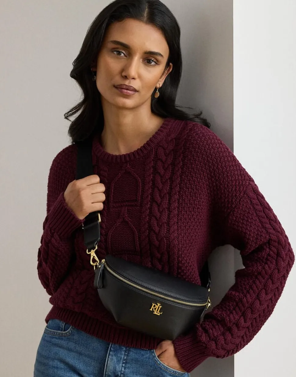 Marcy bæltetasken er et luksuriøst håndfrit tilbehør og er fremstillet af smidigt fuldnarvet læder, som er kendetegnet ved sin naturligt glatte finish. Den rummelige silhuet giver masser af opbevaringsplads til dine yndlingsgenstande, mens et “LRL”-metallogo foran tilføjer en karakteristisk Lauren Ralph Lauren-finish.