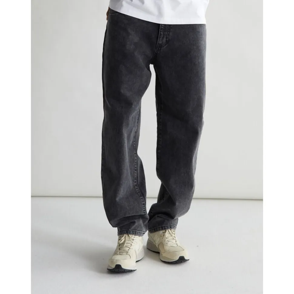Leroy jeans er fremstillet af et stof af blandet kvalitet, der indeholder genbrugt bomuld. De har fem lommer og lynlåslukning foran med brede ben for en behagelig pasform. Bemærk, at denne stil kører en størrelse for lille, så vi anbefaler, at du bestiller en størrelse større