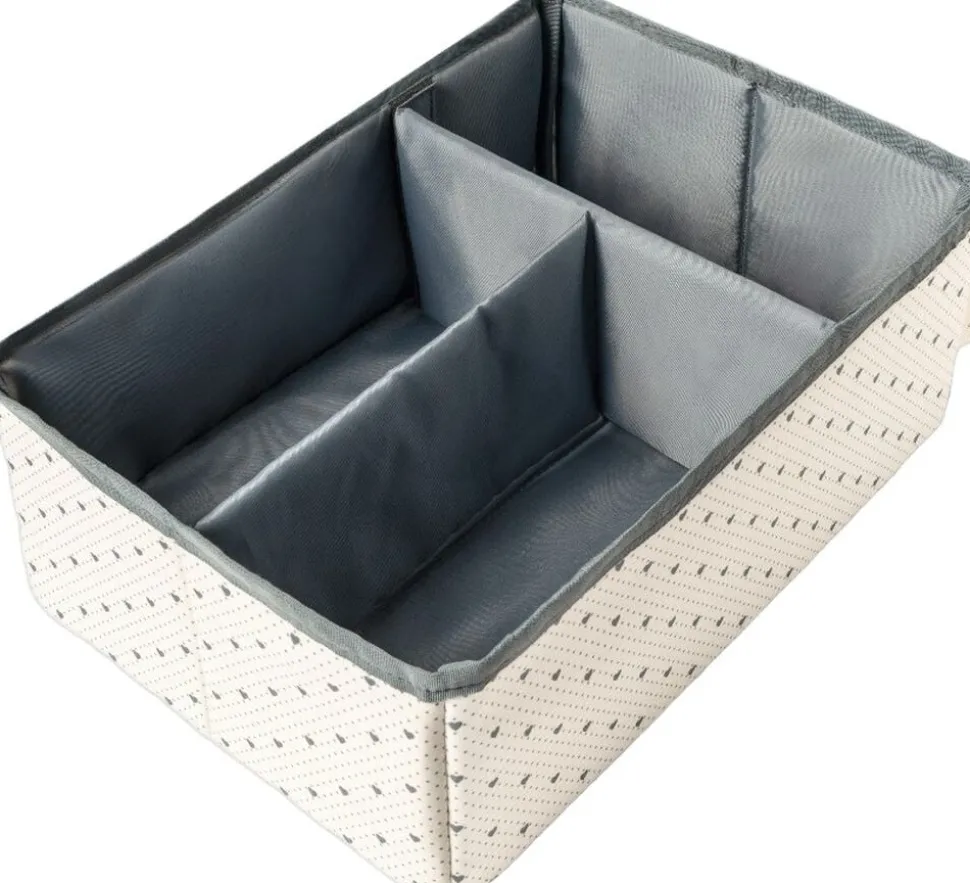 Pusleopbevaringskassen gør det nemt at organisere de ting man har brug for under pusletid. Kassen er perfekt til opbevaring af bleer, cremer, stofbleer og andre puslenødvendigher.Opbevaringskassen består af et stort rum med aftagelige rumdelere – med praktisk velcrolukning, så man selv bestemmer om man vil have et stort rum eller tre mindre rum.Opbevaringskassen har praktiske lommer, en stor og to små. Når du ikke bruger kassen og vil spare plads, kan du åbne bunden, tage den ud og folde den sammen.Mål: 32 x 22 x 13 cm