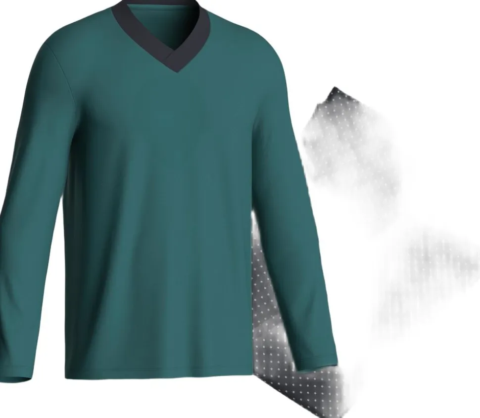 Langt pyjamassæt i 100% bomuld bestående af en langærmet trøje og bukser med sidelommer.