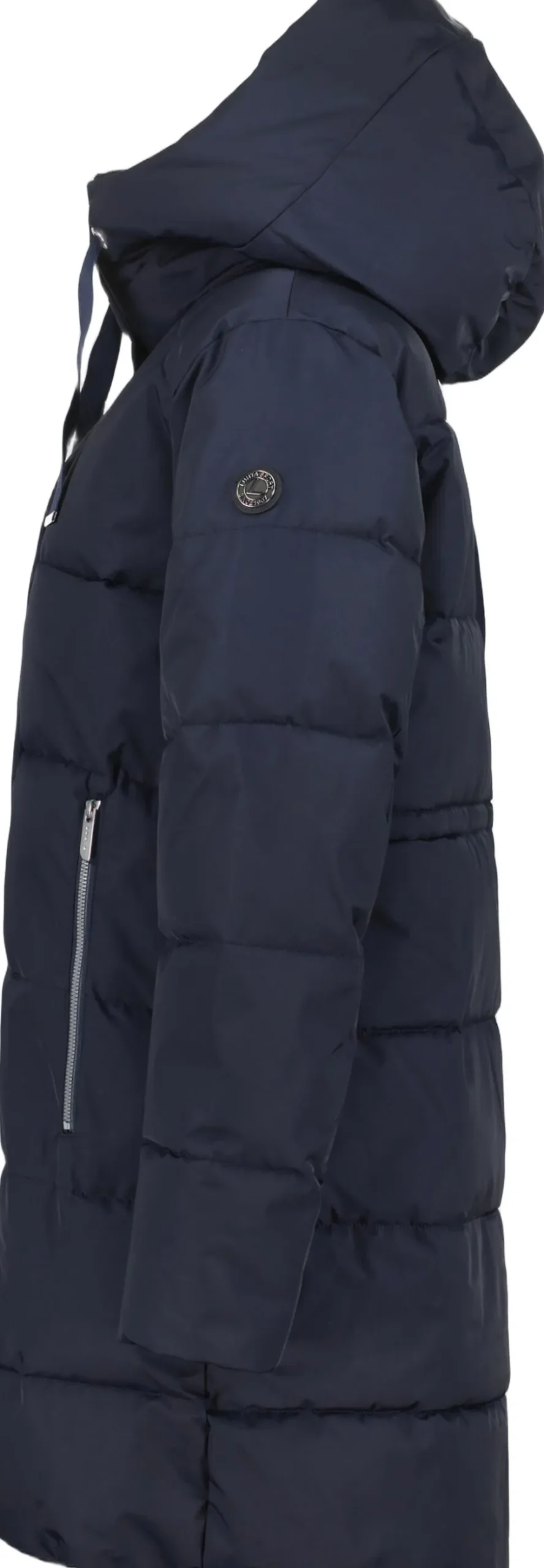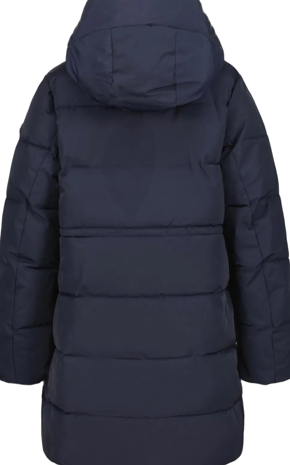 Luhta Downlook frakke til kvinder. Løs pasform. Justering af hætte med snoretræk. Fast hætte. Elastiske manchetter. To forlommer med lynlås. Indvendig lynlåslomme. Tovejs lynlås foran. Vindstolpe med trykknapper. Elastisk kant. Aftagelig udsmykning. Logo-mærkat. Vandsøjle 10.000 mm. Åndbar 5.000 g/m2/24t. Indeholder REPREVE®-polyester fremstillet af 100 % Recycled materialer, herunder plastflasker fra forbrugeraffald. Ved udformningen af dette A.W.S. ACTIVE-produkt er der lagt særlig vægt på funktionalitet og komfort, så produktet er velegnet til både aktiv og afslappet brug. Polstringen er lavet af dunimiation, der giver fremragende varmeisolering i forhold til dens lette vægt. Stoffets overflade er behandlet med en vandskyende finish. Dette vindtætte materiale giver optimal vindbeskyttelse og varme. Varm isolering. Indeholder Recycled materiale. Stoffets overflade er behandlet med en vandskyende finish. Aftagelig udsmykning. Elastisk kant. Logo-mærkat