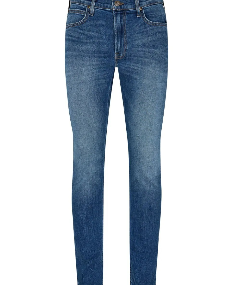 Luke modellen er en slim fit jeans. Luke er cool og moderne og har en mellemhøj talje og lynlås i gylpen. De er skåret smalt over låret og har ligeledes en smal benåbning. Autentisk blå denim med medium stretch fremstillet af genanvendt bomuld. Den mellemblå finish gør denne jeans nem at anvende til alle farver. Sliddet tilføjer en fin kontrast ved lår og knæ. Kontrastsyningerne har en varm gylden farve, der komplementerer den blå denim, mens knapperne og nitterne glimter i en fin messingfarve. Klassisk stil med fem lommer.