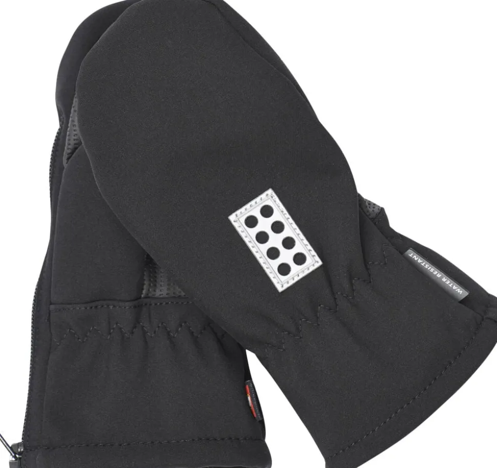 Vandafvisende LEGO softshell-luffer til små børn. Vanterne har et vandsøjletryk på 8.000 mm og er åndbare og vindtætte. Der er en elastik ved håndleddet og refleks på forsiden. Inden i håndfladen er der en PU-coating for et bedre greb.