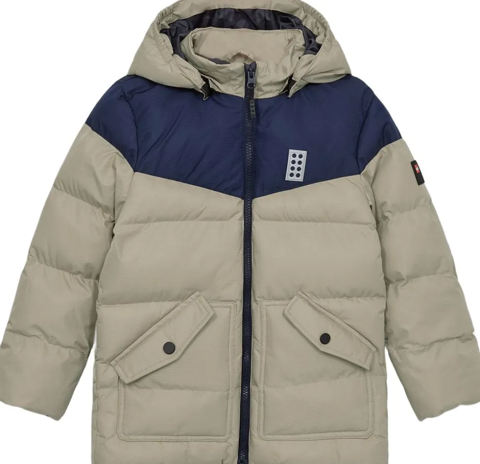 Denne stilfulde LEGO® jakke til drenge er perfekt til hverdagens små og store oplevelser. Dynejakken har et klassisk design med farveblokke, og den er fyldt med syntetiske dun, så den er blød og lækker at have på.