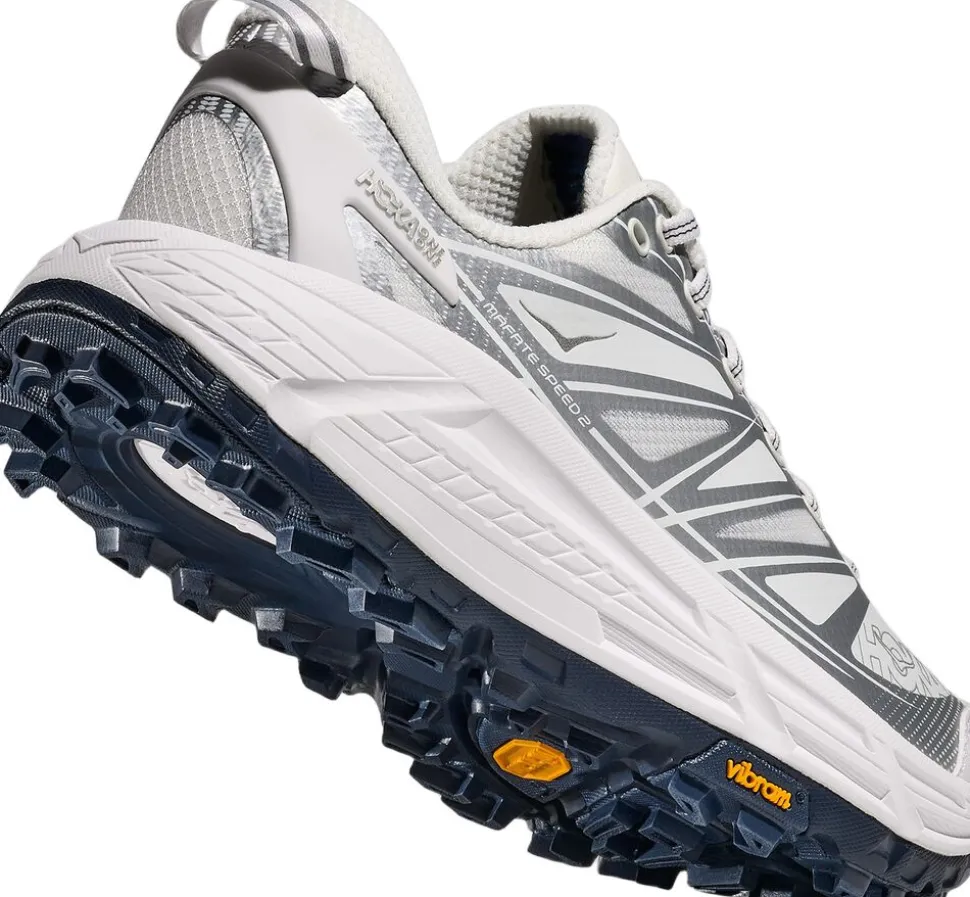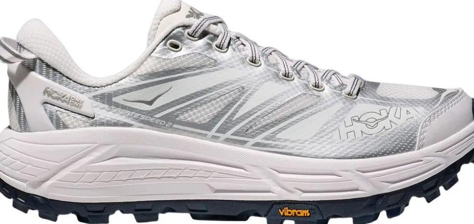 MAFATE SPEED 2 blev bygget til at tilbyde støtte og affjedring i teknisk terræn over enhver afstand. Denne opdatering har en dyb, aktiv fodramme til støtte og en tunet meta-rocker for at gøre overgange nemmere gennem gangcyklussen. Ydersålen bruger dybe, fleksible riller til at tilpasse sig en række terræner, og 5 mm Vibram Mega-Grip-mønsteret giver et godt greb selv de vanskeligste overflader. MAFATE SPEED 2 er klar til at præstere kilometer efter kilometer, uanset hvor langt dit eventyr på sporet fører dig