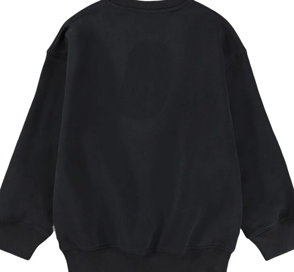 Denne sorte sweatshirt fra Molo er fremstillet i blødt økologisk bomuld og dekoreret med et stort print af et fredshåndtegn. Designet har en oversize pasform og ribkanter ved hals, ærmer og bund.