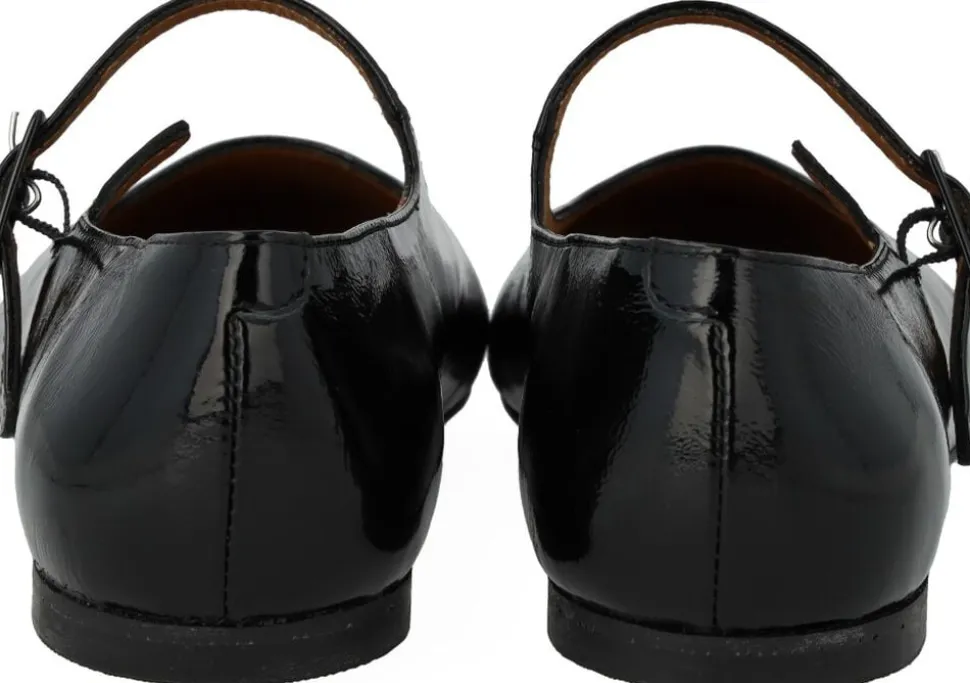 Ballerinaen har justerbar tone-i-tone spændelukning, vatteret indersål, kromfrit læderfoer og en let, blød og fleksibel ANGULUS gummisål.
