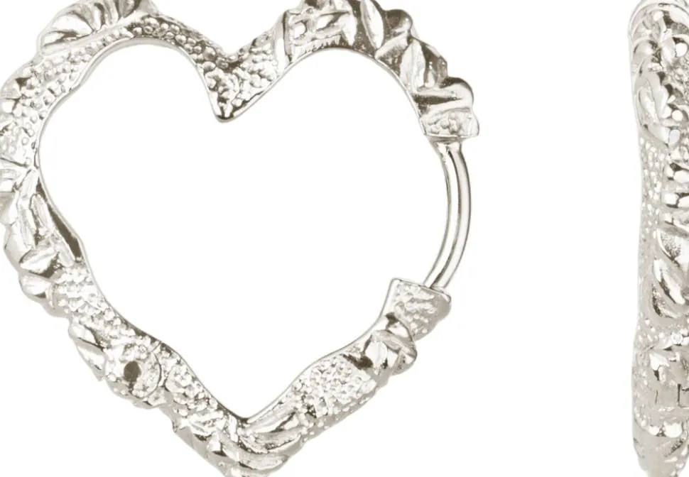 Cute meets cool! Mellem Heart Crush Hoops giver den klassiske hoop-følelse et hjerte-twist: rå tekstur møder glansfuldt motiv, så øret træder i fokus med et klart, grafisk udtryk.