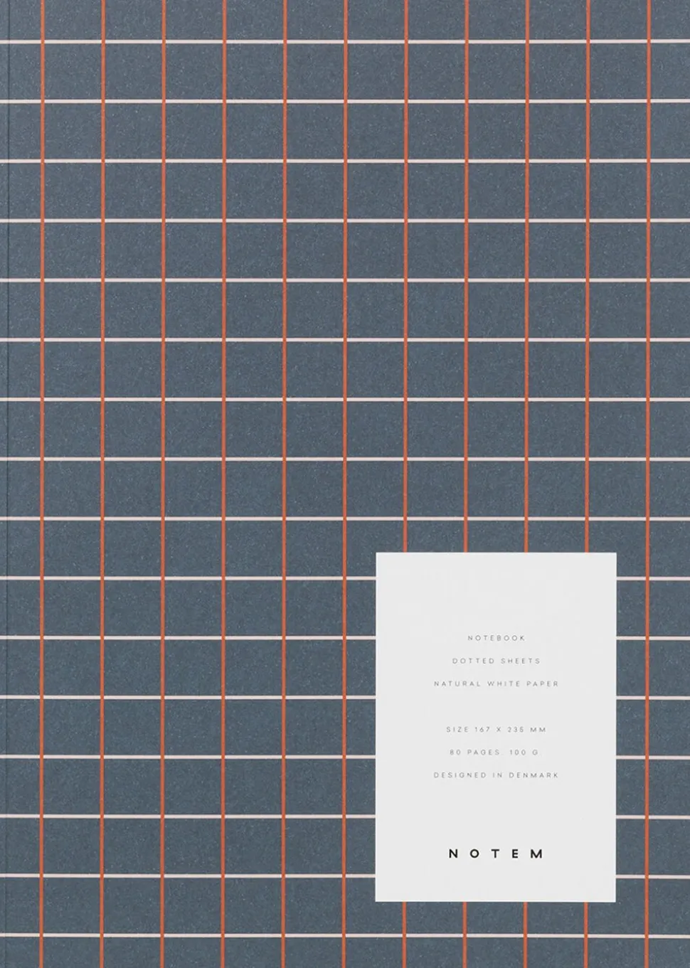Softcover notesbog fra Notem Studio. Indhold: 80 sider, prikkede sider. Farve: Mørk blå. Mål: 167 x 235 mm.