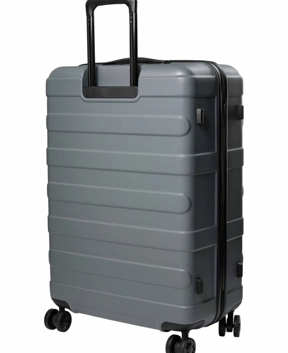Kuffert fra Magasin du Nord Collection i en kvalitet af 100% ABS-plast, der sikrer en robust skal. Kufferten er fuldt foret i genanvendt RPET Polyester og består af et stort rum med lynlåslukning, flere indvendige lommer samt en indvendig strop, der sikrer at kuffertens indhold er fastgjort. Derudover har kufferten en TSA-kompatibel lås, en diskret logodetalje på fronten, et håndtag i side og top. Fire robuste og lette 360° spinnerhjul til nem manøvrering, dækkene er lavet i et holdbart materiale, der ruller jævnt på alle overflader. Samt et flertrins teleskophåndtag. 74x53x29 cm