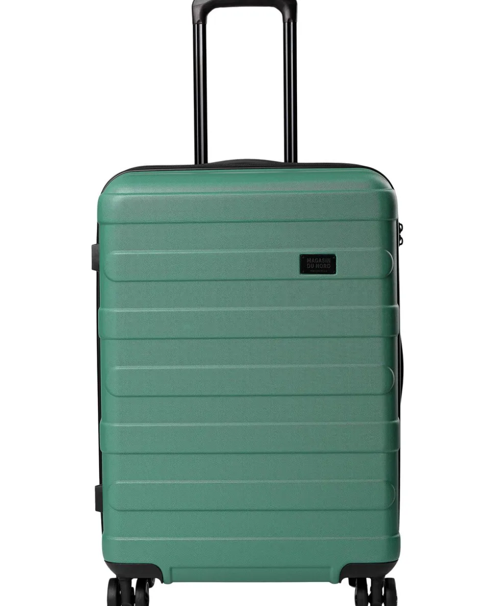 Kuffert fra Magasin du Nord Collection i en kvalitet af 100% ABS-plast, der sikrer en robust skal. Kufferten er fuldt foret i genanvendt RPET Polyester og består af et stort rum med lynlåslukning, flere indvendige lommer samt en indvendig strop, der sikrer at kuffertens indhold er fastgjort. Derudover har kufferten en TSA-kompatibel lås, en diskret logodetalje på fronten, et håndtag i side og top. Fire robuste og lette 360° spinnerhjul til nem manøvrering, dækkene er lavet i et holdbart materiale, der ruller jævnt på alle overflader. Samt et flertrins teleskophåndtag. 65x45x25 cm