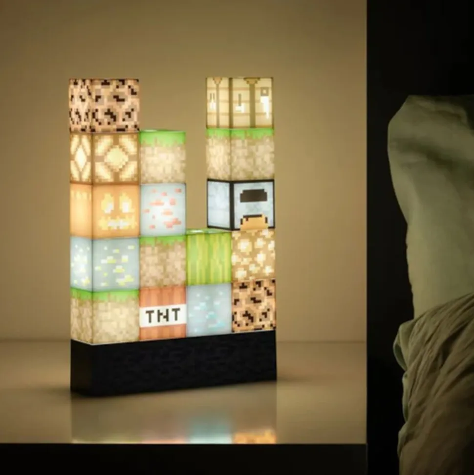 De forskellige blokke inkluderer græs, TNT, diamantmalm, redstone, guld og flere andre. Lampen leveres i en trykt gaveæske og er den perfekte gave til enhver gamer eller Minecraft-entusiast. Den er også en unik og dekorativ tilføjelse til enhver samling af Minecraft-memorabilia.
