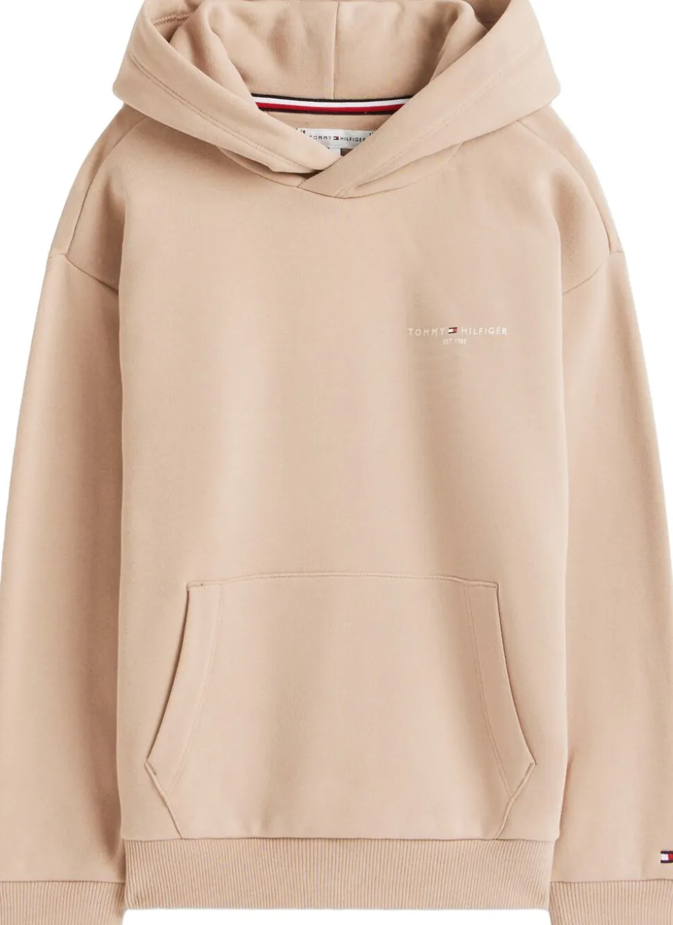 Denne hættetrøje i børstet bomuldsblanding er en uundværlig tilføjelse til enhver weekendgarderobe og har en hyggelig kængurulomme og diskret signaturbranding. Højdepunkterne omfatter børstet bomuldsblandingsfleece, hals med hætte, ribstrikkede manchetter og kant samt en kængurulomme. Tommy Hilfiger-logoet vises på brystet med Tommy Hilfiger-branding og flagbroderi på manchetten. Form og pasform: Almindelig pasform med skrånende skuldre, inklusive køn. Sammensætning og pleje: 80 % bomuld, 20 % polyester