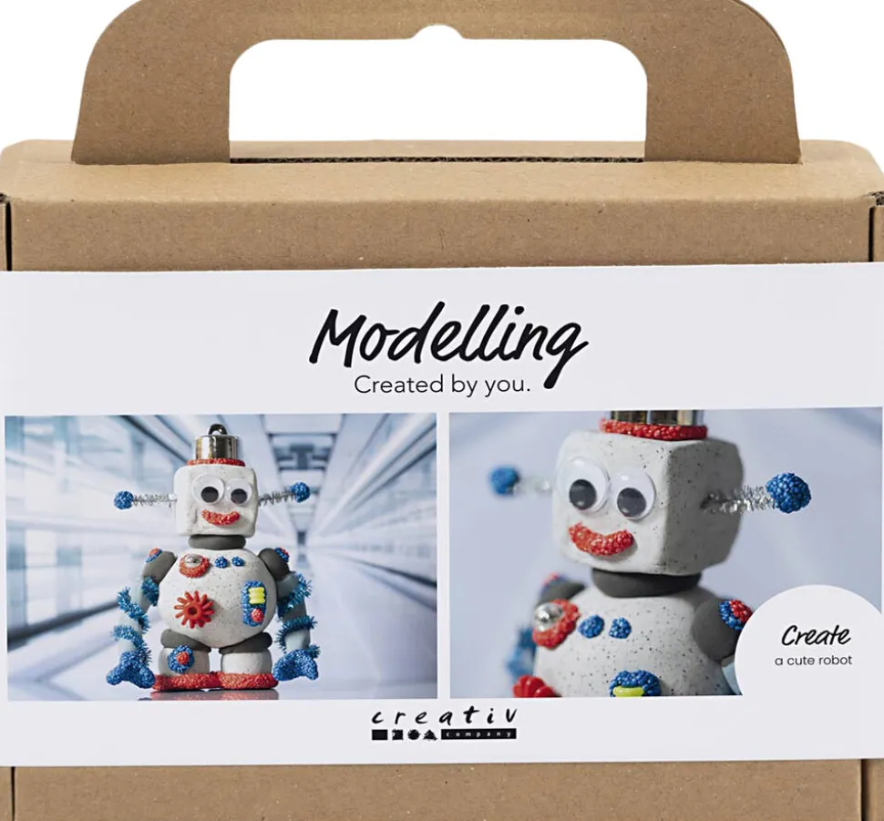 Med vores Creativity in a Box kan du og børnene lave den sejeste, lille robot, som er fuld af sjove detaljer. Indeholder alle de materialer I skal bruge, og al den vejledning I behøver. Hvordan ser en robot egentlig ud? Åbn vores Creativity in a Box, og udforsk det sammen. Her kan I skabe jeres helt egen robot i stone clay et unikt modelleringsmateriale, som giver en imponerende sten-effekt. Det er komplet selvhærdende og bliver hårdt og fast efter ca. 24 timer. Tørrer det undervejs, ælter I det bare med lidt vand det er supernemt. I kan også lave de sjoveste dimsedutter og dingenoter. Byg dem af piberensere, perler, Silk Clay® og Foam Clay® og dekorer robotten i lige den stil, I ønsker. Resultater bliver den vildeste robot med masser af personlighed.