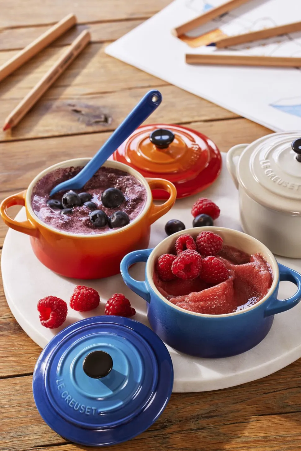 Le Creuset Mini Gryde er en elegant og funktionel gryde, der måler 10 cm i diameter. Denne gryde er i en smuk Azure Blue farve, der tilføjer et friskt og livligt element til dit køkken. Den er ideel til at tilberede og servere portionsanretninger, hvilket gør den perfekt til både hverdag og festlige lejligheder. Mini gryden er designet til at være alsidig; den kan bruges til at opvarme saucer i mikroovnen eller til at holde snacks friske. Den kommer med et praktisk låg, der hjælper med at bevare varmen og smagen af dine retter. Gryden er perfekt til dine foretrukne dip, tilbehør og småretter, hvilket gør den til et must-have i enhver husstand. Le Creuset er kendt for deres høje kvalitet og holdbarhed, og denne mini gryde er ingen undtagelse. Den er fremstillet af materialer, der sikrer langvarig brug og modstand mod ridser og skader. Uanset om du skal lave en lækker sauce eller servere en appetitlig forret, vil denne mini gryde være en praktisk og stilfuld løsning. Le Creuset Mini Gryde er ikke kun funktionel, men også en smuk tilføjelse til dit køkkenudstyr. Oplev glæden ved at tilberede og servere med denne charmerende gryde, der kombinerer stil og funktionalitet. Den kompakte størrelse gør den let at opbevare, og den vil helt sikkert blive et favoritredskab i dit køkken.