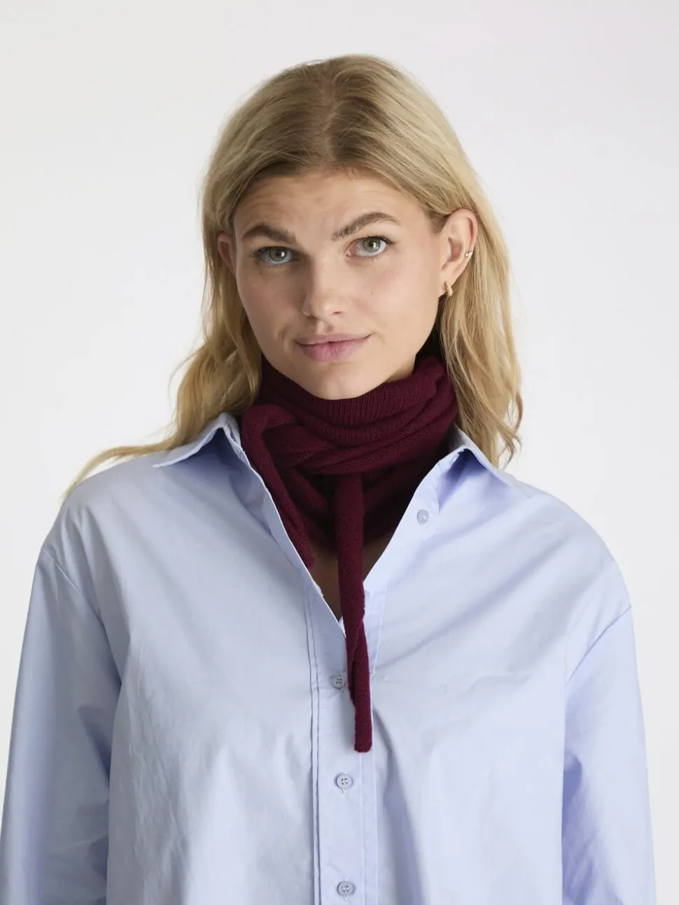 Strikket tørklæde i en blød uldblanding, der når to gange rundt om halsen. Tørklædet er designet i en trekantet form og indeholder cashmere.