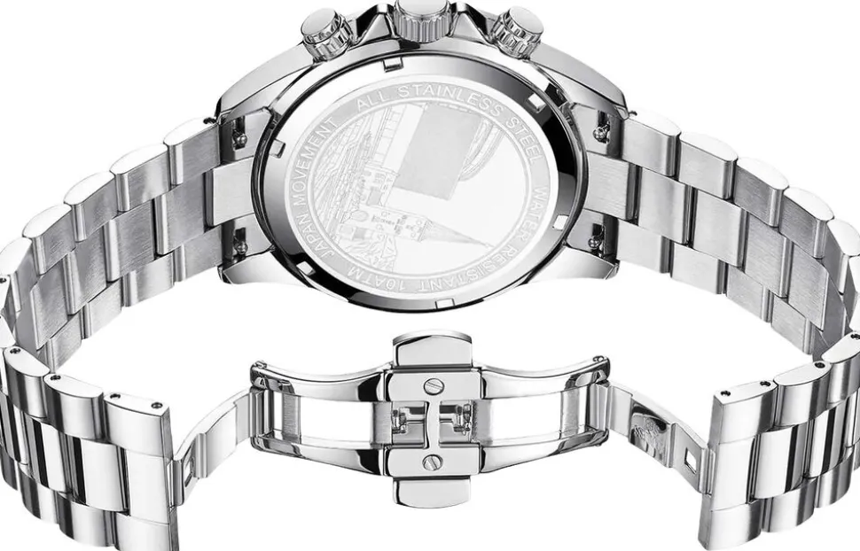 Med en diameter på 43 mm gør dette ur et markant indtryk. Det er vandtæt op til 10 ATM, hvilket gør det egnet til svømning. Urkassen er fremstillet af 316L kirurgisk stål, og glasset er safirbelagt, hvilket giver modstand mod ridser. For forbedret synlighed i svagt lys er uret udstyret med Luminova. De ensartede lænkeforbindelser bidrager til et klassisk og sammenhængende udseende.