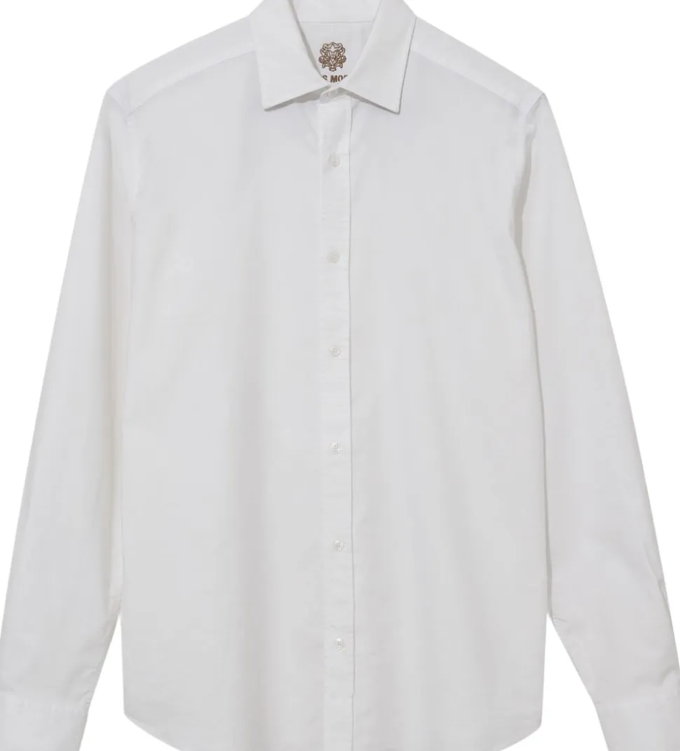En tidløs nødvendighed med en moderne kant. Denne klassiske skjorte har en almindelig pasform med en skarp krave, lange ærmer og raffinerede manchetter med knapper – designet til at tage dig fra kontortid til eftertid med lethed. Den er fuldendt med en ren knaplukning og passer ubesværet sammen med skræddersyede bukser eller afslappet denim.