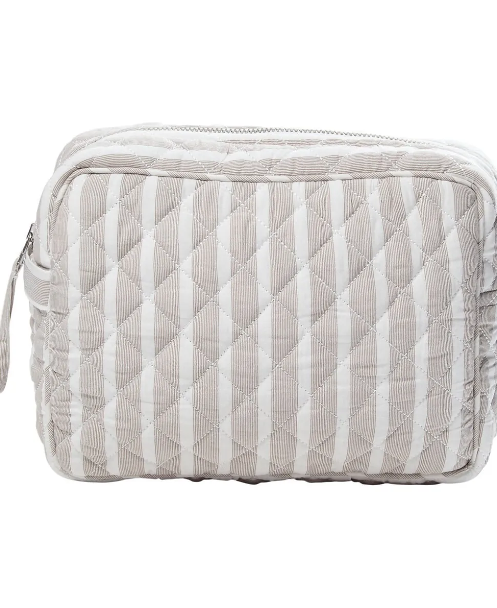 Toilettaske fra Magasin du Nord Collection i den blødeste kvalitet af 100% økologisk bomuld med GOTS-certificering. Toilettasken består af ét stort rum med lynlåslukning samt mindre inderlommer. Derudover har toilettasken et lille håndtag samt fine vatterede syningsdetaljer. En skøn toilettaske i den lækreste kvalitet.