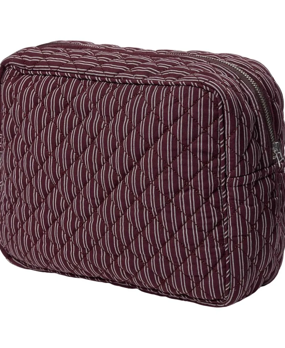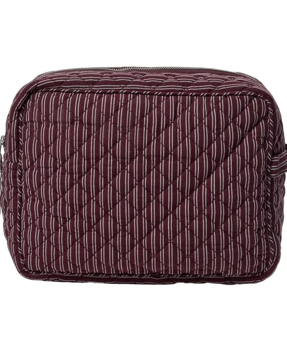 Toilettaske fra Magasin du Nord Collection i den blødeste kvalitet af 80% økologisk bomuld med GOTS-certificering. Toilettasken består af ét stort rum med lynlåslukning samt mindre inderlommer. Derudover har toilettasken fine vatterede syningsdetaljer og et stribet print. En skøn toilettaske i den lækreste kvalitet.