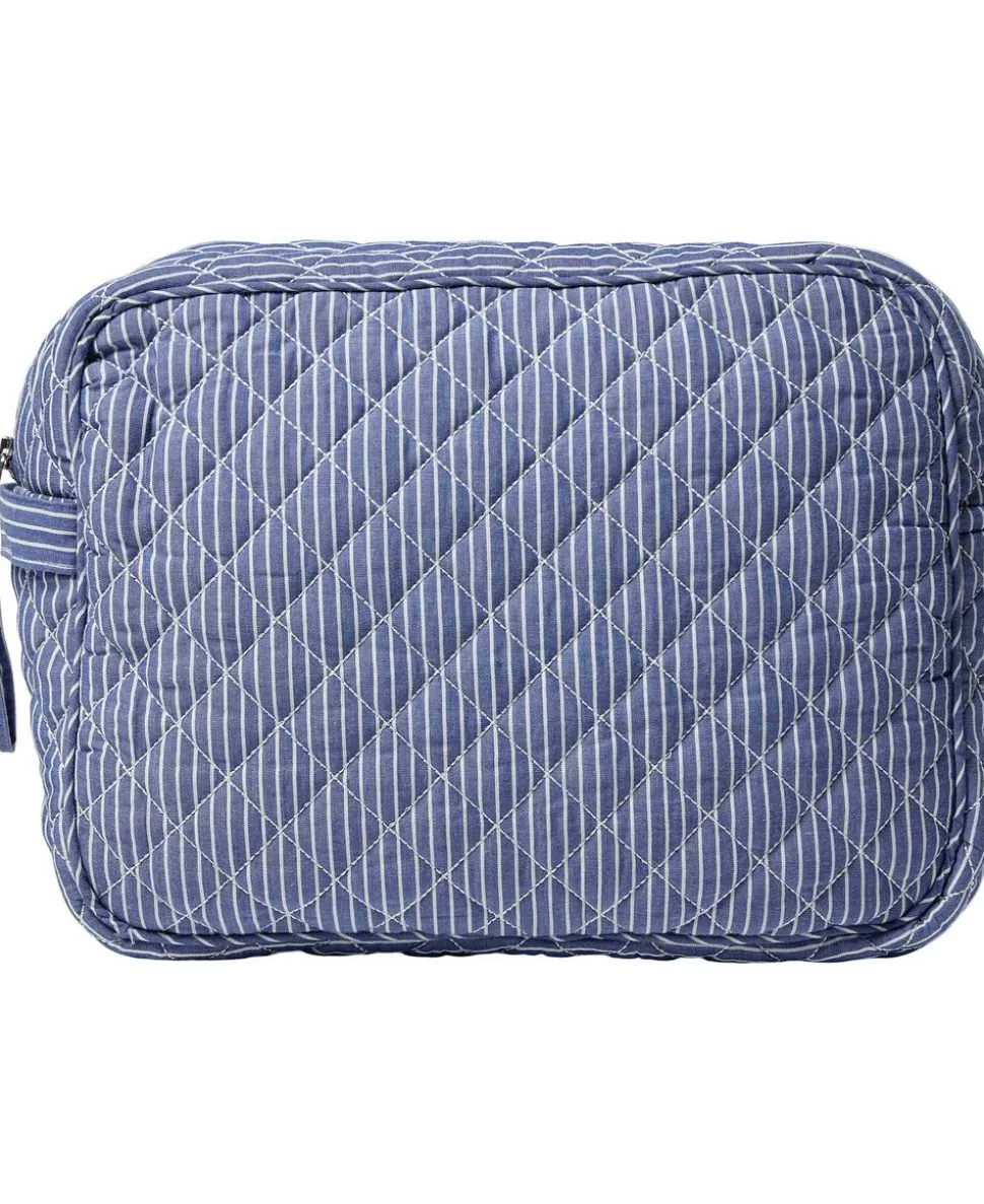 Toilettaske fra Magasin du Nord Collection i den blødeste kvalitet af 100% økologisk bomuld med GOTS-certificering. Toilettasken består af ét stort rum med lynlåslukning samt mindre inderlommer. Derudover har toilettasken fine vatterede syningsdetaljer. En skøn toilettaske i den lækreste kvalitet.