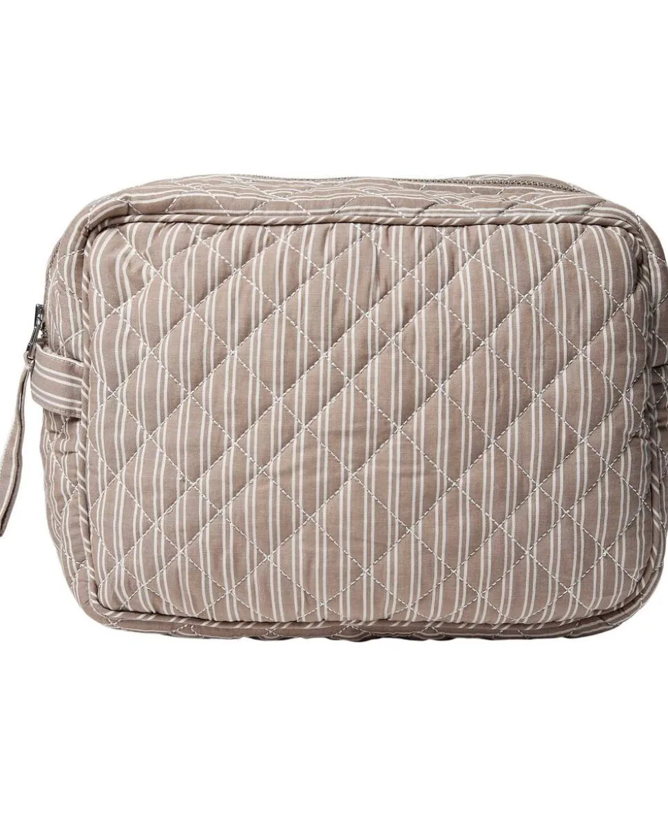 Toilettaske fra Magasin du Nord Collection i den blødeste kvalitet af 100% økologisk bomuld med GOTS-certificering. Toilettasken består af ét stort rum med lynlåslukning samt mindre inderlommer. Derudover har toilettasken et lille håndtag samt fine vatterede syningsdetaljer. En skøn toilettaske i den lækreste kvalitet.