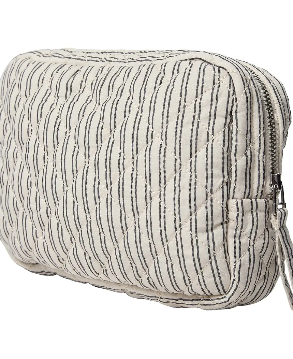 Toilettaske fra Magasin du Nord Collection i den blødeste kvalitet af 100% økologisk bomuld med GOTS-certificering. Toilettasken består af ét stort rum med lynlåslukning samt mindre inderlommer. Derudover har toilettasken et lille håndtag samt fine vatterede syningsdetaljer. En skøn toilettaske i den lækreste kvalitet.