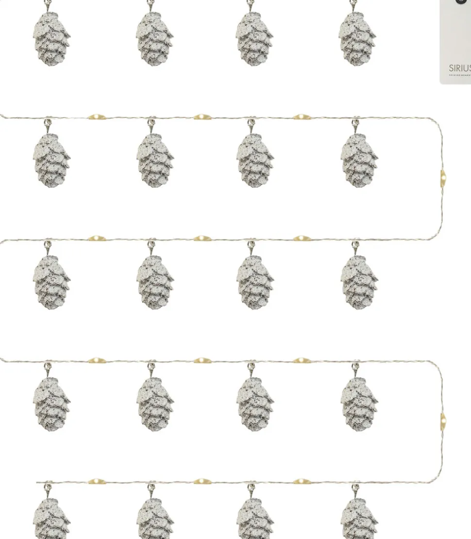Lyskæde med kogler med sne på, den lyser med et varmt hvidt LED lys, den giver et næsten usynligt look med svævende lys pga. den tynde metaltråd lysene er monteret på. Til indendørs brug.