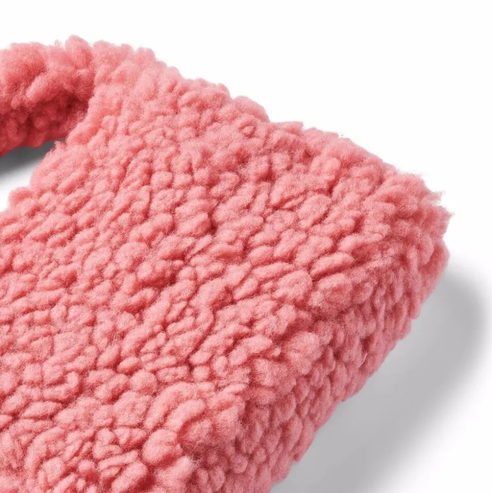 Orange taske fra Molo med matchende lining og en lille lomme. Tasken måler 24 cm i bredden og 18 cm i højden midtfor uden strop.