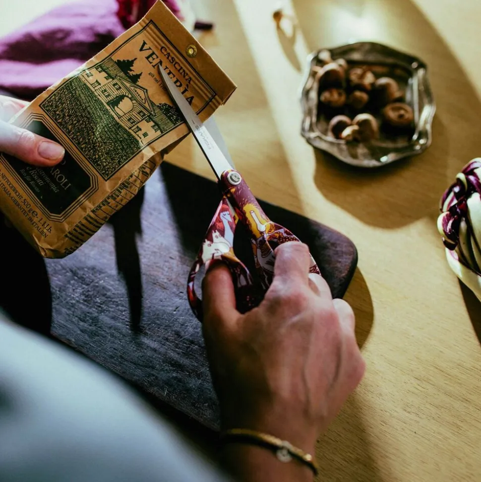 Mumi-saksen er fremstillet med knivskarpe blade i rustfrit stål. Det lette, ergonomisk formede håndtag sikrer komfort og præcis kontrol. Håndtestet og fremstillet i Finland.