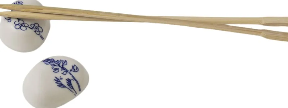 Den harmoniske blå og hvide kollektion er en hyldest til Tove Janssons liv og levned. Designet er inspireret af de bløde, taktile former af den klipperige ø Klovharun, hvor Tove tilbragte sine somre. Illustrationerne er inspireret af blomsterkranse, som Tova selv havde lavet, og er en hyldest til øens flora. Moomin Arabia holder til spisepinde, 2-delt sæt, Haru