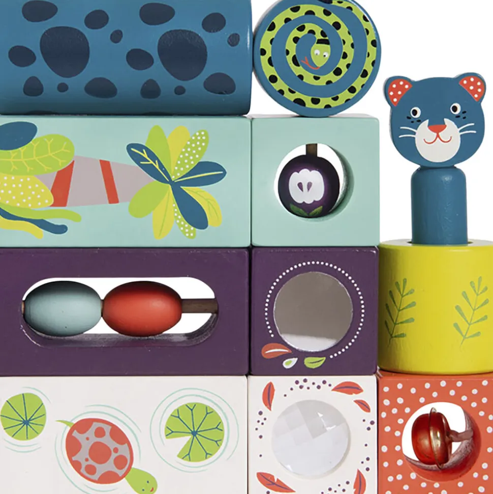 Klodserne har forskellige lyde, når de rystes. Når Zimba, den blå panter bliver presset, og derefter frigjort – springer den op af en klods.