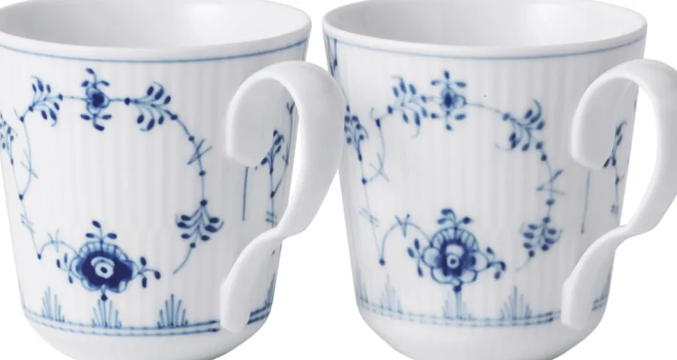 Musselmalet Riflet fascinerer med sin klassiske alsidighed. Den yndefulde dekoration fremhaever de delikate former og det fine haandværk, der ligger bag hver steldel. Musselmalet Riflet er et tidloest stel: det kan bruges hver dag som basis for en unik kollektion af Royal Copenhagens porcelaen, hvor det traditionelle mikses med det moderne. En evig klassiker.